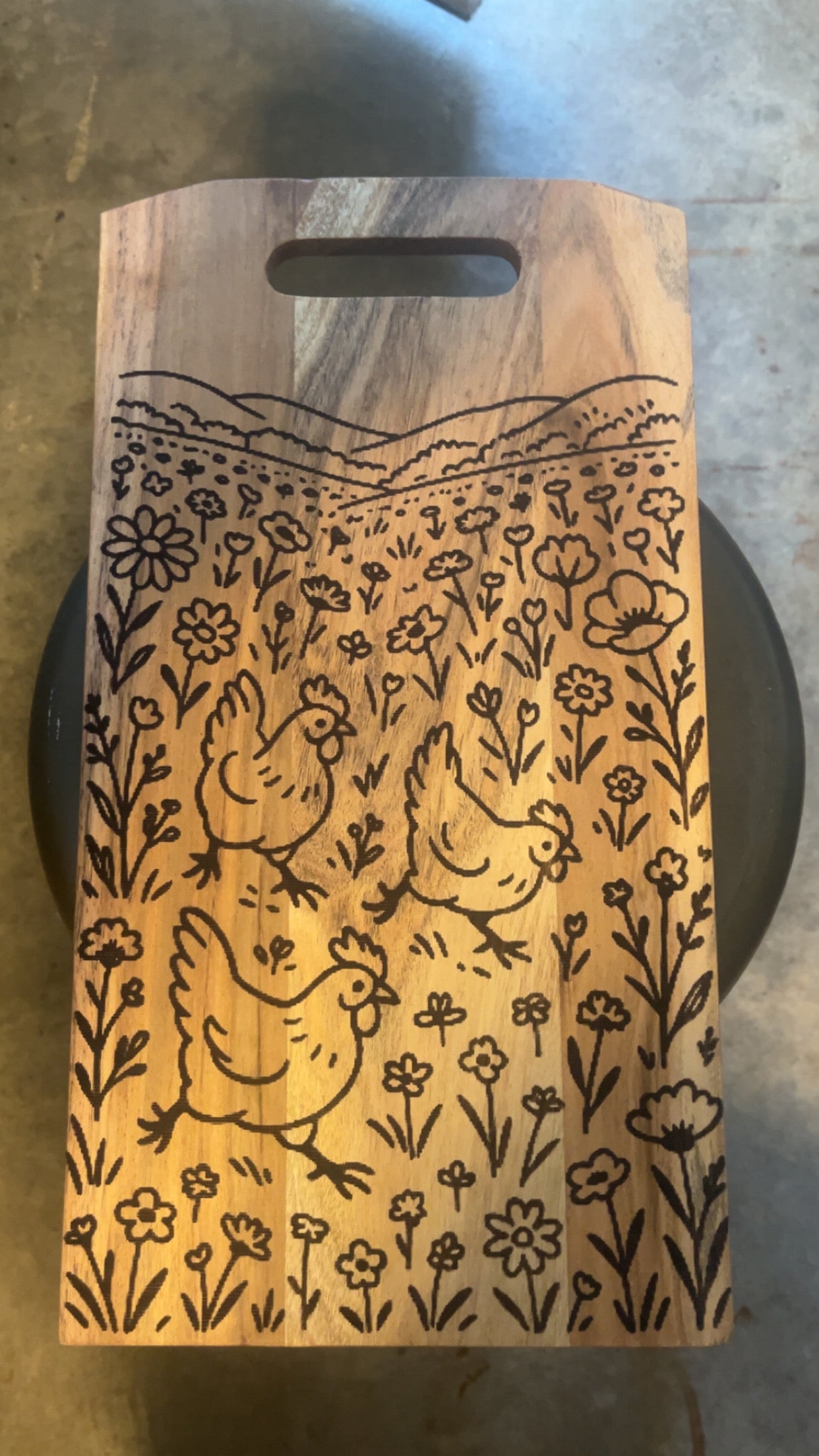 19x10 inches. Custom burnt wooden board perfect for display or kitchen decor. (please note, wood coloring and appearance vary from board to board) **all boards are finished with a coat of food grade mineral oil.