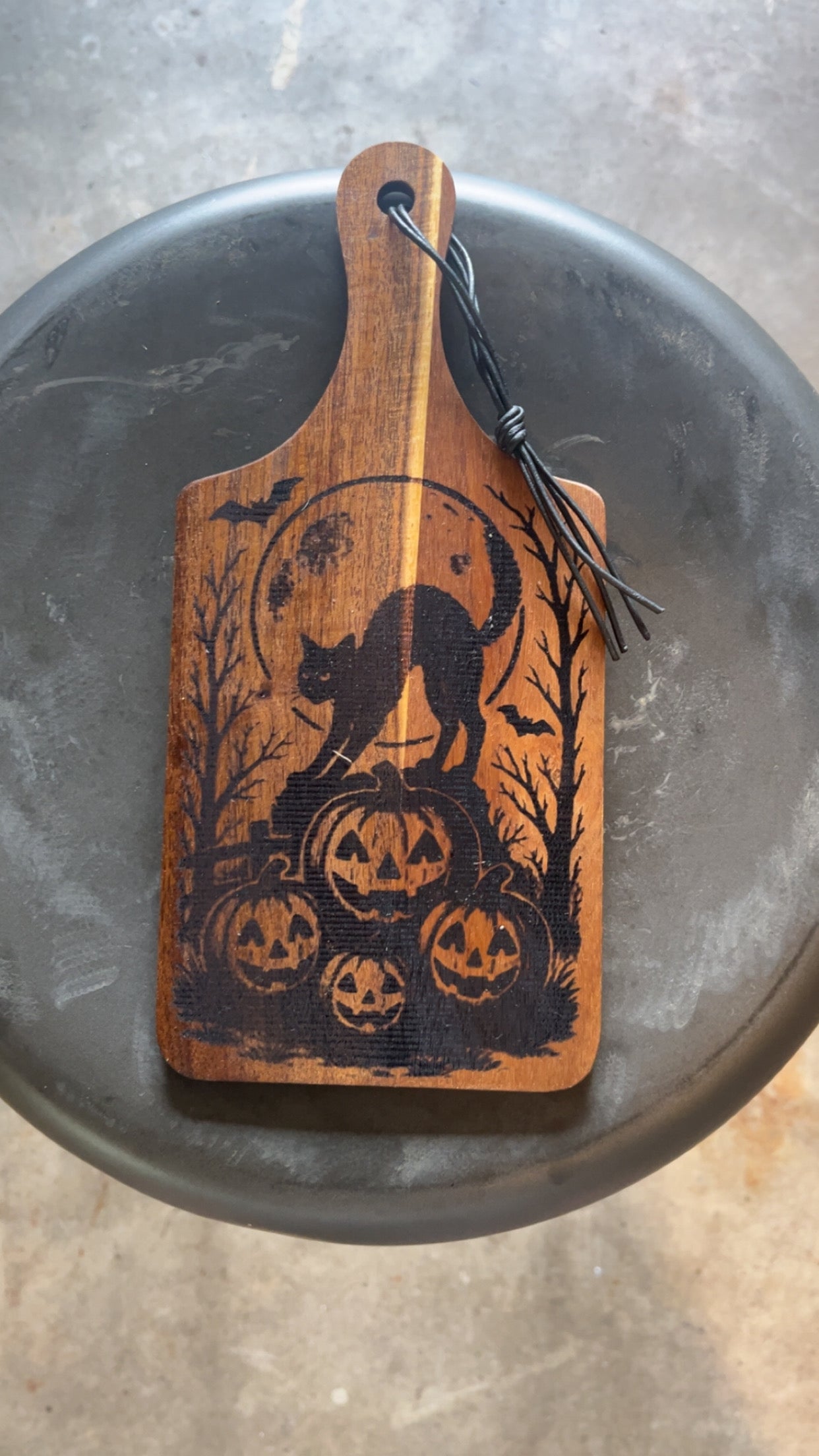 5x7 inches (11 with handle) Custom burnt wooden board perfect for display or kitchen decor. (please note, wood coloring and appearance vary from board to board) **all boards are finished with a coat of food grade mineral oil.